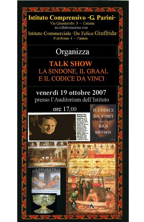 Il 19 ottobre 2007, conferenza su argomenti tradizionali presso la Scuola Media Statale Parini di Catania.