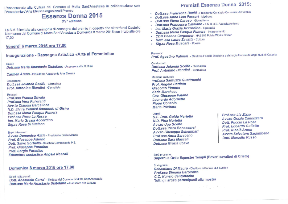 12 aprile 2014, Lectio Magistralis tenuta dal Gran Siniscalco, Prof.ssa Elvira Pennisi Asmundo di Gisira, presso l'EXPO' di Pedara, CT.