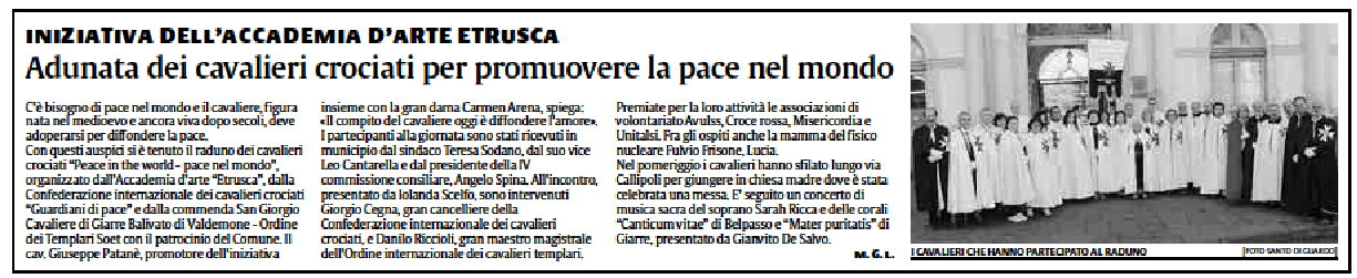Passeneto n°69) sul tema I Cavalieri Templari Ieri e Oggi “Le radici