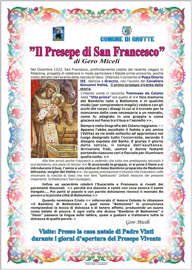 d'apertura del Presepe Vivente (Sabato 28 e Domenica 29 DICEMBRE, Giovedì 2 ,