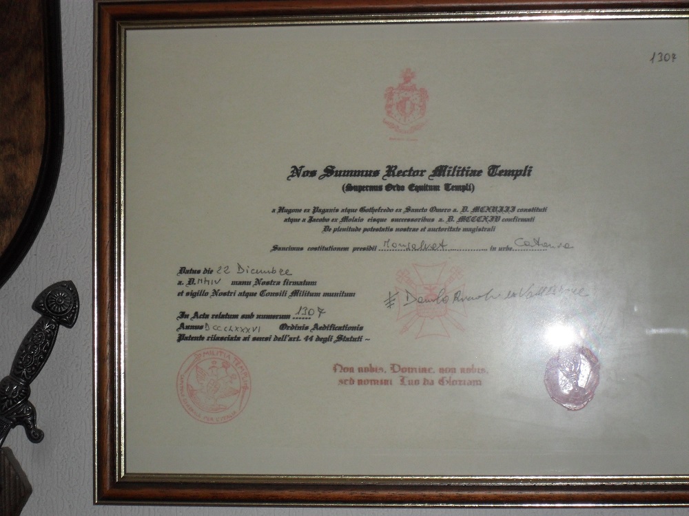 [3] Il 26 settembre 1994 registra a Catania l’Ordine con la denominazione di Associazione dei Cavalieri del Tempio di Gerusalemme (N.6439/3).